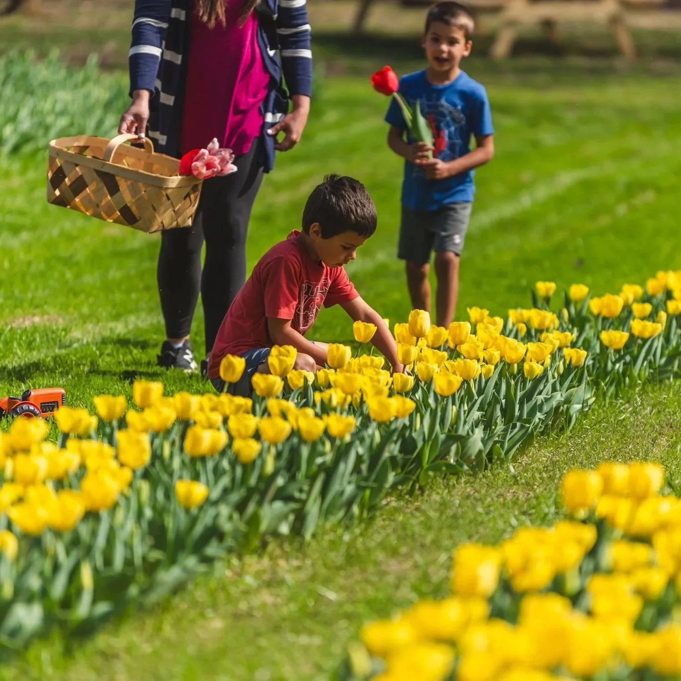 Join us in celebrating a new spring season by strolling our field blooming with 100,000+ tulips! Each March, the farm is open to visitors wishing to pick their own blooms to take home.