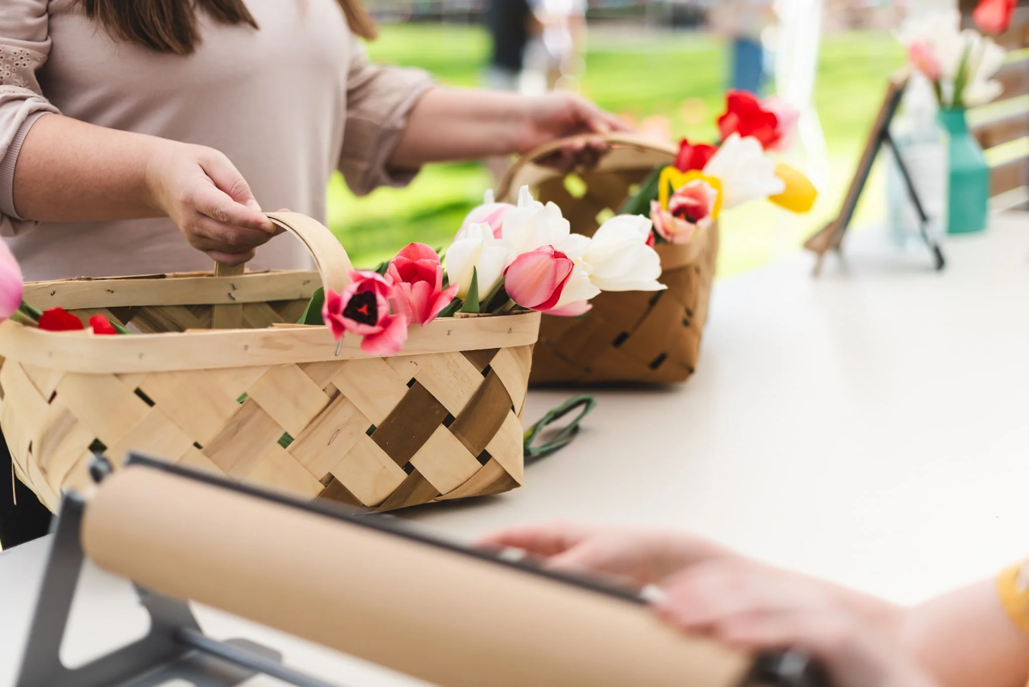 We provide baskets and scissors for your use while you are here - simply cut your choice of flowers. Upon check out, flowers are wrapped into bouquets for you to take home.